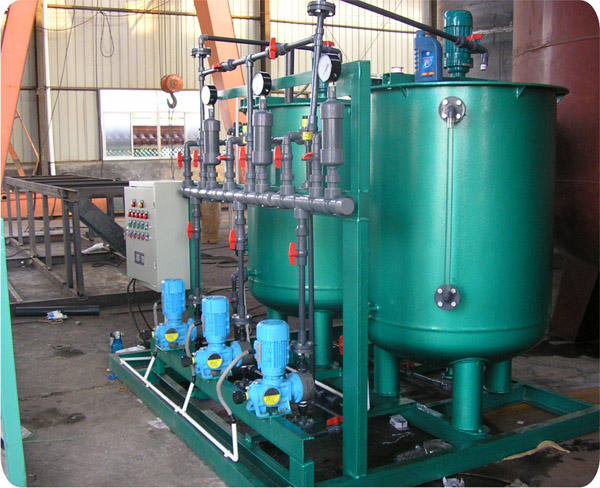 本裝置主要包括藥液溶配系統(tǒng)、計(jì)量投加系統(tǒng)、安全系統(tǒng)和控制系統(tǒng)等四部分。